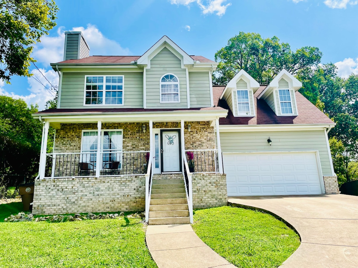 Bine ai venit în casa noastră înșiruită situată central, în inima unui cartier liniștit, la doar 10-15 minute de mers cu mașina de activitățile pline de viață din Nashville! Datorită accesului fără cheie, pentru confortul tău, poți face check-in fără probleme. Casa noastră înșiruită este dotată cu tot ce ai nevoie pentru a profita la maximum de vizita ta în Music City, inclusiv: • Bucătărie complet aprovizionată și utilată • Wi-Fi de mare viteză • Mașină de spălat/uscător automat de rufe • Acoperiș privat • Șemineu . Televizoare Smart