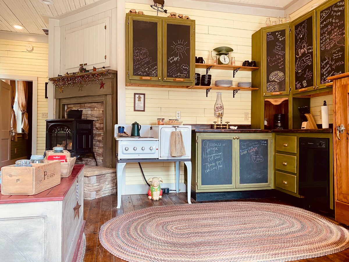 Fă un salt în timp în această clădire școlară din anii 1800, frumos restaurată, care acum este un refugiu montan confortabil, situat lângă un pârâu liniștit cu păstrăvi. În interior, vei găsi mobilier artizanal și antichități alese cu grijă, combinate cu dotări moderne, pentru un sejur cu adevărat unic. La câteva minute de lacul Junaluska, de stațiunea de schi Cataloochee și de farmecul centrului orașului Waynesville, această locuință reprezintă combinația perfectă între istorie, relaxare și aventură montană.