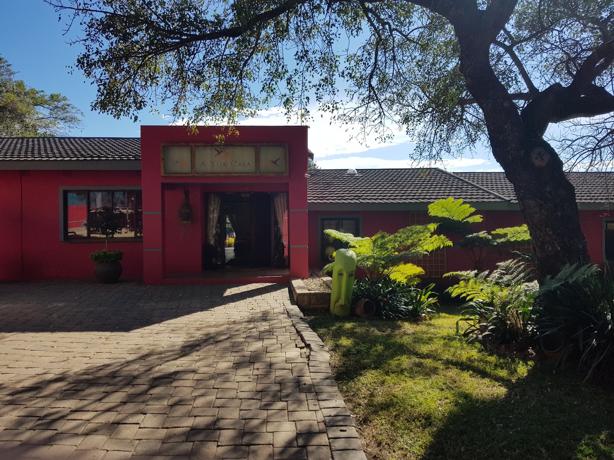 Locuință centrală și privată, liniștită. Mobilier confortabil. Locuri de dormit 6 oaspeți în 3 dormitoare 1 pat matrimonial cu baie privată, 2 dormitoare cu 2 paturi twin pe cameră, împărțind o baie. Zonă de living (WiFi/TV) bucătărie complet utilată (frigider/congelator, cuptor cu microunde, prăjitor de pâine, fierbător de apă, aragaz și cuptor). Curte pavată în aer liber și cină/grătar. Energie solară (fără ÎNTRERUPERI DE CURENT) Spitalul Medi-Clinic (800 m), centru comercial (magazin alimentar/de băuturi alcoolice, optometrist, chimist. La câțiva pași de restaurant și de restaurant