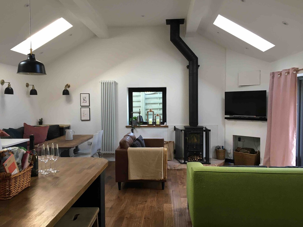 Chicken Shed de la Knowle Top a fost construit recent în 2019 pe ruinele unui hambar vechi și decorat la cele mai înalte standarde de stil industrial. Situat într-o locație unică, sus pe partea Ribble Valley a dealului emblematic Pendle Hill din Lancashire, acesta este înconjurat de pășuni de oi, unde iepurele și vulpea vin să spună noapte bună. În ciuda acestei idile rurale, suntem la doar cinci minute de mers cu maşina de Clitheroe, unul dintre cele mai frumoase oraşe din nord-vest. Vizualizările îţi vor tăia răsuflarea!