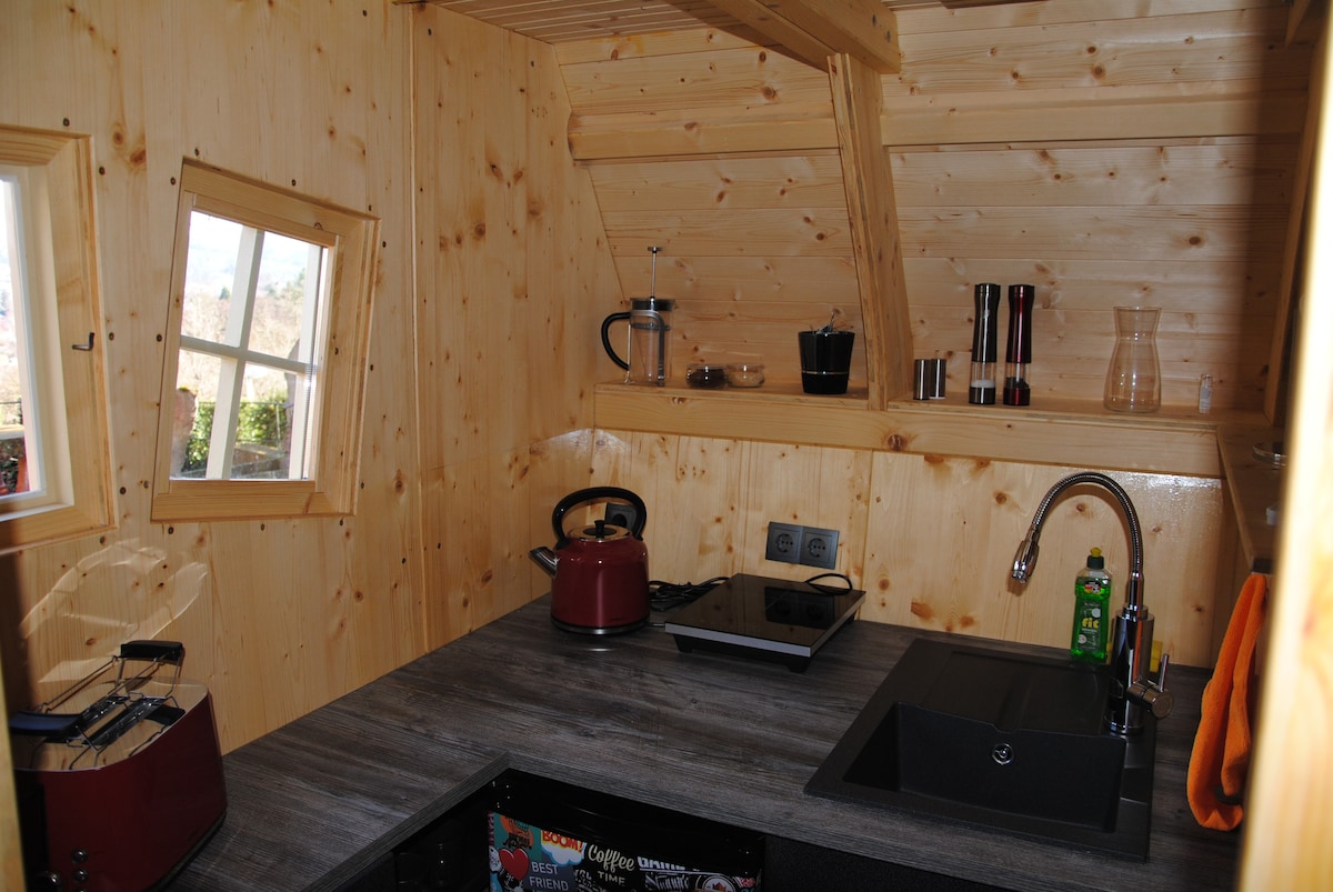 Căsuță idilică în mijlocul naturii, la marginea orașului alb de zăpadă Lohr am Main. În casă, construită în 2022, există un living, o bucătărie, o baie și un dormitor confortabil în pod. Terasa privată cu vedere la Spessartwald vă invită să visați. Traseul de drumeții începe chiar în fața ușii. Rareori găsești prieteni cu două picioare, dar cu patru picioare. Mica noastră grădină zoologică este formată din câini, pisici și mini porci.