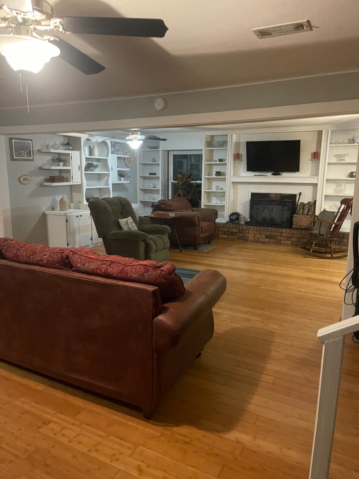 Built in the 70's, this spacious farmhouse will sure to bring you joy and relaxation. House sits on 12 acres with 7 acre lake for guests to enjoy. Guest are welcome to fish (catch and release please) and have full walking access around the entire lake. Relax on the back-covered patio and enjoy the view of the lake. Please note that this property is close to the interstate thus resulting in traffic noise. Also, No cable TV in the home. Smart TVs are located in the living room and game room.