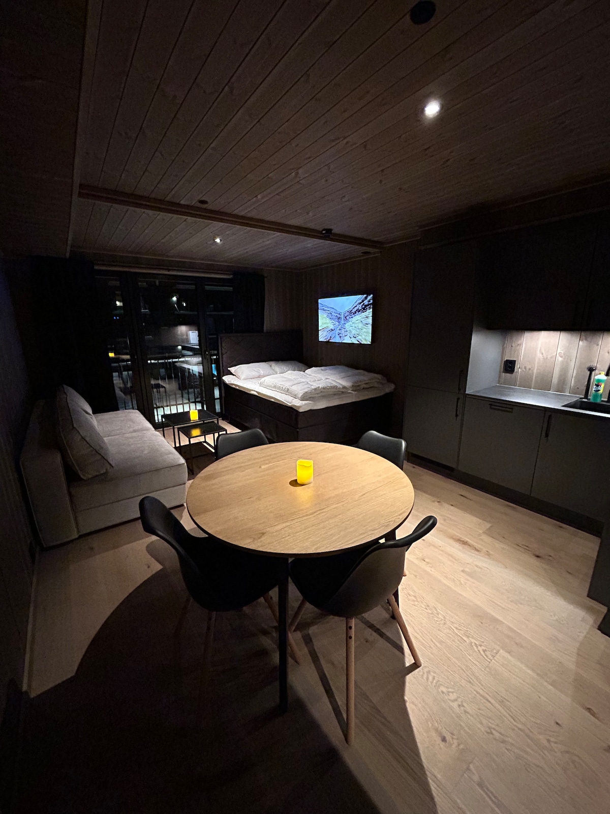 Apartament studio nou în Fjellandsbyen, care este situat foarte central, cu stațiunea de schi, après-ski, restaurante, magazine și multe facilități în imediata vecinătate. Aici ai, de asemenea, acces la o sală de gimnastică nouă și excelentă la etajul 1, are, de asemenea, propriul dulap pentru schiuri pentru apartamentul de la etajul 1. În același timp, există și parcare în garajul fierbinte cu lift până la apartament. Apartamentul este dotat cu toate ustensilele de bucătărie necesare, hârtie igienică, săpun de mâini, plapume și perne și tot ce este necesar pentru curățenie