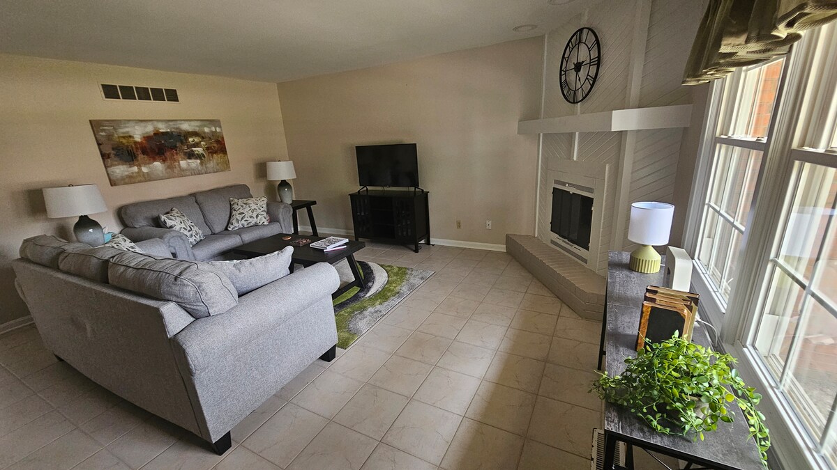 Bucură-te de șederea ta în zona Newburgh/Evansville, cu această locuință perfect situată. Există 4 dormitoare (5 paturi) și 2 băi. Oferim o bucătărie completă, 3 zone de luat masa și living confortabil și cameră de familie cu șemineu din cărămidă. Există o mulțime de spațiu în curte, așa că, dacă doriți să aduceți jocuri, nu ezitați! {2100sq ft Fără scări!!!} Un etaj! Ești la o scurtă distanță cu mașina de partea de est a Evansville și la o plimbare și mai rapidă cu mașina până la pasarela adorabilă de pe malul râului din Newburgh, cu cumpărături și restaurante. Grătar cu gaz