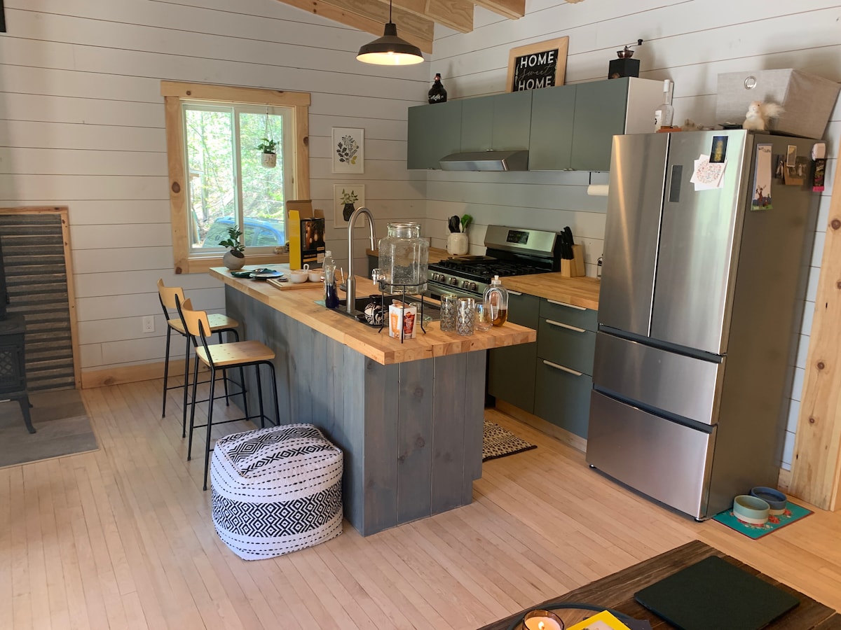 Tucked away near DuPont state forest sits an enchanted modern cabin on 6 private acres. This one bedroom one bath private home is the perfect basecamp for your getaway in the mountains. It's within 15 minutes of all the mountain biking and hiking DuPont State Forest has to offer and about a 15 minute-ish drive to Pisgah National Forest . After a day of adventures come home to enjoy some time on the back deck (it feels like you're in a treehouse) listening to the birds while the sun sets.