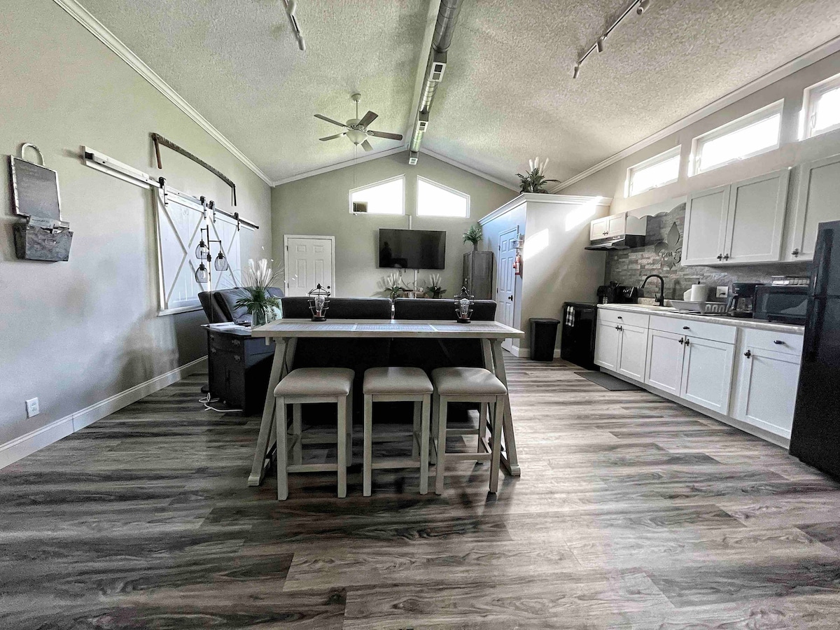 Fără taxă DE curățenie! 👫 Voi RAMBURSA pentru copiii sub 12 ani, doar trimite un mesaj! 🐾CÂINII CUMINȚI stau liberi! Bucură-te de liniștea acestui spațiu...doar fugă puțin! Vino să iei niște cercetare și dezvoltare pentru un weekend sau un timp. Perfect pentru cupluri, familii/prieteni, vânători, lucrători care călătoresc etc. Bucură-te de un spațiu relaxant unde poți respira! Așteaptă-te la un loc curat și confortabil în care nu vei mai vrea să pleci niciodată. Suntem suficient de aproape de oraș pentru a lua rapid alimente sau cumpărături, dar cuibărit în liniște la țară!