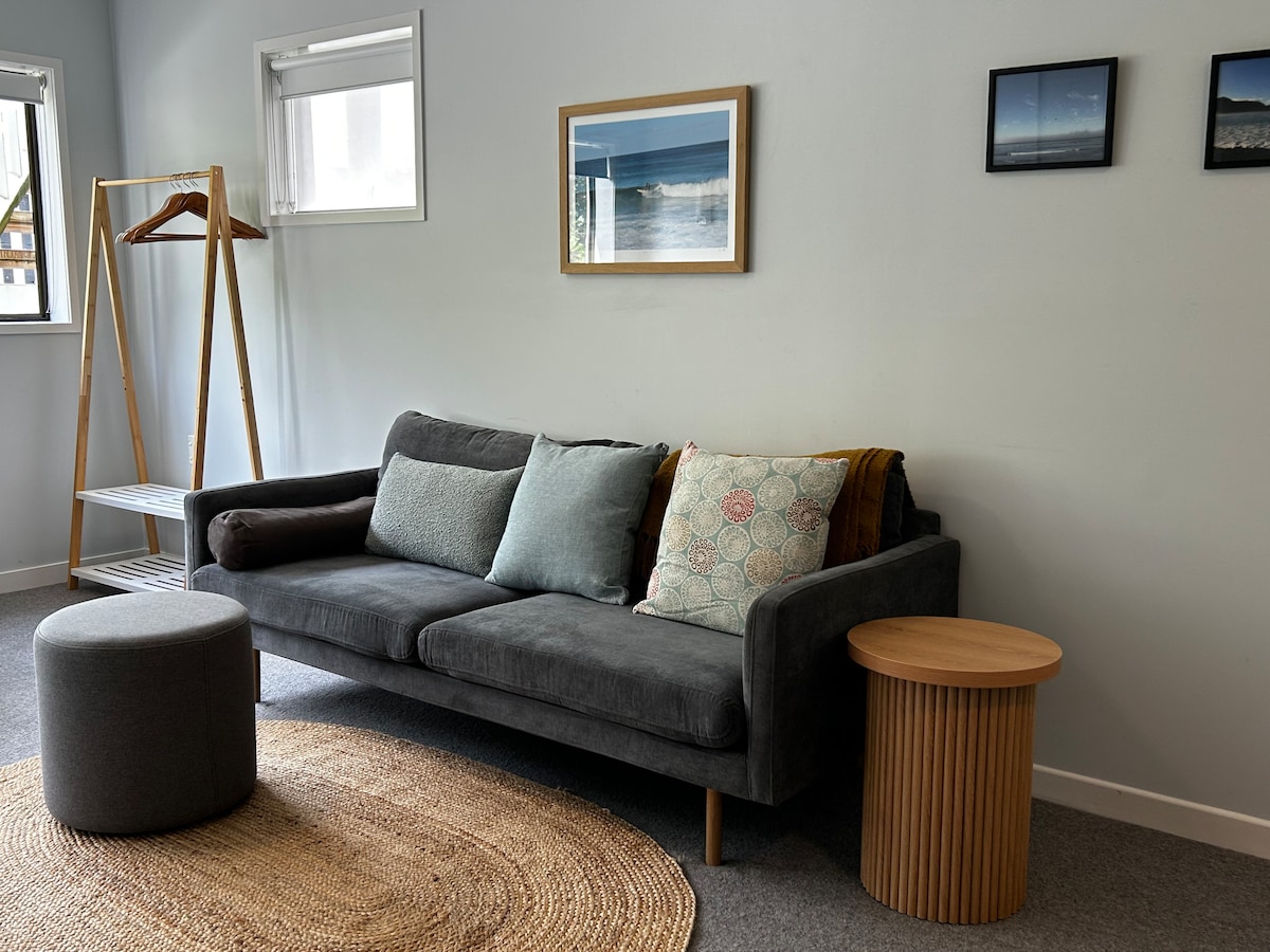 LOCAȚIE UIMITOARE! Studio modern, însorit, autonom, la doar câțiva pași de plajă. Plimbare scurtă la magazine, cafenele, restaurante, transport și toate facilitățile oferite de Browns Bay Village. Aleile fabuloase ale stâncilor în apropiere. Chicinetă bine echipată, baie mică cu duș, chiuvetă și toaletă. Pat matrimonial de calitate, nou, confortabil, cu lenjerie de calitate - masă mică de mic dejun și scaune, canapea cu două locuri, plus scaun de trestie de zahăr și TV de dimensiuni bune. Curăță impecabil. Intrare separată.