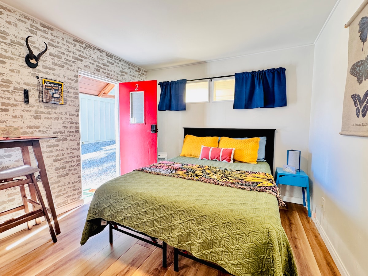 Situat în țara canionului, în apropiere de trecătoarea Cajon, unde liniștea rurală întâlnește confortul, farmecul și luxul, toate îmbunătățite de faimoasa intimitate de top a ODM, priveliști și împrejurimi liniștite. Intrarea dublă cu ușă franceză a apartamentului este accesată numai într-o zonă pentru oaspeți, unde un cadru pitoresc de tip complex de 5 stele, care include o curte pavată privată, terasă, foișor, piscină și spa. În interior se află un pat matrimonial, o canapea Queen, o bucătărie, o masă, jocuri, un televizor de 75"și o baie de lux de 5 stele. Dormitorul separat include un pat matrimonial.