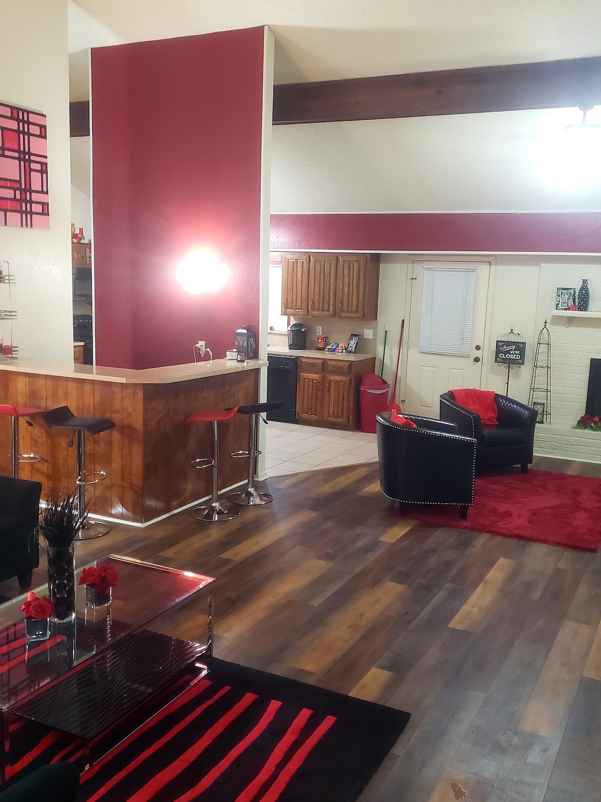 Bucură-te de o experiență elegantă în acest bungalou situat central! Aceasta este la câteva minute de Top-Golf, cartierul de silozuri Magnolia, cumpărături și mâncare! Pe un acru în oraș, retras, dar aproape de tot! Vino să te bucuri de o ședere indiferent dacă ieși din oraș în vacanță sau pentru o călătorie de lucru, acest mic bungalou este locul perfect pentru tine! Suntem încântați să vă invităm în acest spațiu pentru a vă bucura de acest oraș la fel de mult ca și noi!