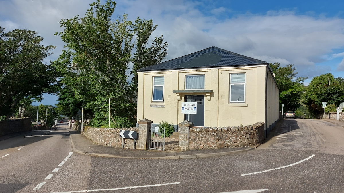 Old school gymnasium building been a hostel since 1961 . Sympathetically renovated in 2006 and again in 2018 providing high quality budget accommodation in the coastal village of Helmsdale. All bedrooms en-suite and spacious and airy. Well equipped kitchen, large dining and lounge areas with log burning stove. Large garden with seats and drying area. Secure shed for bicycles and equipment.