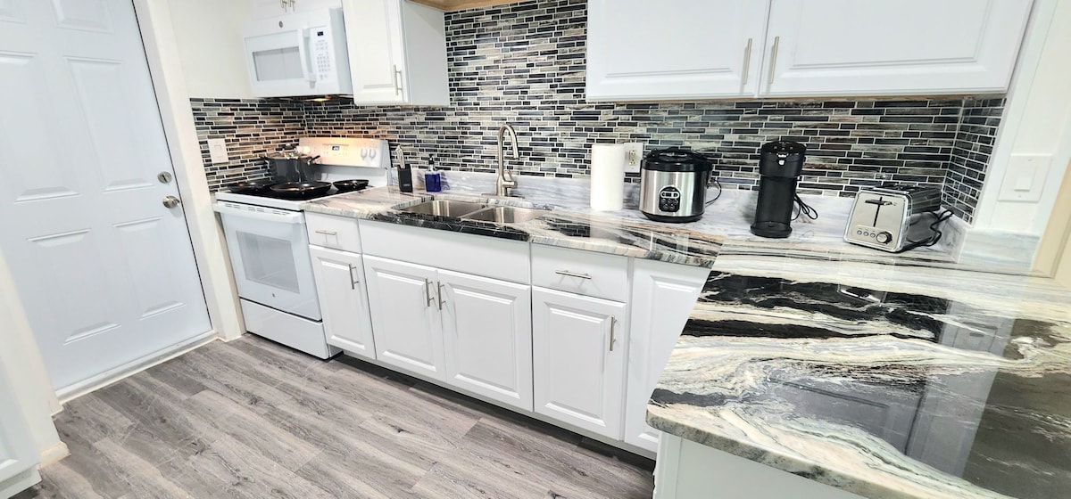 Întregul grup se va bucura de acces ușor la orice. Această cazare elegantă este perfectă pentru 4 persoane. Un dormitor și o cameră de zi Are o canapea extensibilă matrimonială, acest apartament spațios este făcut pentru tine și familia ta, cu toate facilitățile necesare pentru o vacanță relaxantă. Are un pat matrimonial și o baie recent renovată, chicinetă nouă, spălătorie în interior, curte imensă în spate. Petrecerile nu sunt permise. Fumatul interzis 🚭 Animalele de companie sunt permise 1 loc de parcare disponibil din acest loc situat central