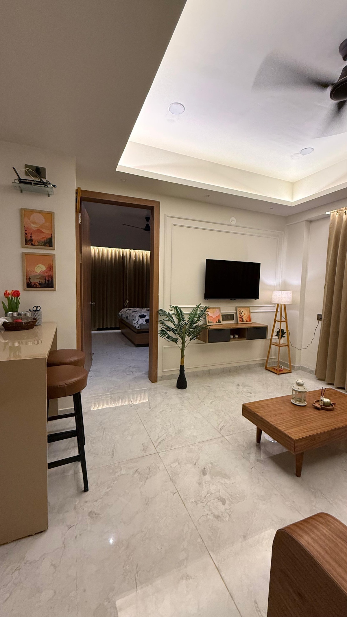 Trezește-te cu priveliști uimitoare ale răsăritului de soare la The Cozy Cove, un refugiu liniștit în localitatea Pune's Blue Ridge. Acest apartament modern, complet mobilat, are o canapea extensibilă confortabilă, un dormitor odihnitor cu lenjerie moale și interioare elegante concepute pentru confort și stil. Bucură-te de Netflix și de nopți răcoroase pe televizorul inteligent, de o configurație liniștită a balconului și de o bucătărie modulară elegantă, echipată pentru toate nevoile tale. Perfect pentru cupluri sau familii mici, este o evadare liniștită, cu toate facilitățile de acasă.