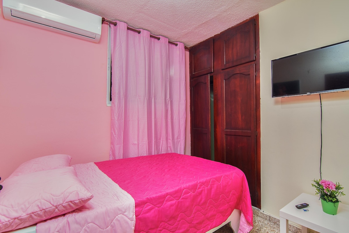 Această cameră de hotel poate găzdui 2 persoane. Acesta are un pat dublu, o bucătărie utilată și o baie privată. Acesta include, de asemenea, aer condiționat. Proprietatea se află la 4 minute de mers pe jos de plajă. Situat în Punta Cana, la 250 m de plaja Arena Gorda și la 300 m de plaja Bavaro. Acesta este la o distanță de mers pe jos de multe restaurante și baruri. Conexiunea Wi-Fi este de minimum 50 Mbps în întreaga proprietate. Suntem pe un drum mai liniștit, mai murdar. Electricitatea este inclusă în șederea ta, fără costuri suplimentare.