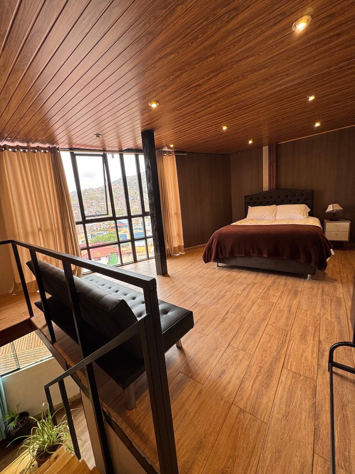 Studio modern și confortabil situat într-o zonă centrală din Cusco, unde puteți găsi supermarketuri, restaurante, farmacii, instituții bancare și financiare, case de schimb valutar, clinici de sănătate și altele, decor modern simplu, funcțional, primitor și bine luminat. Cameră cu WiFi, Netflix, cablu Magic, canapea confortabilă, bucătărie complet echipată, duș cu multă apă caldă non-stop, terasă cu umbrelă și vedere panoramică la oraș.