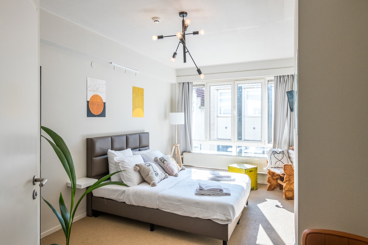 Helder en charmant design appartement, afgewerkt met kwaliteitsmaterialen. Er is 1 badkamer, 1 slaapkamer, keuken, Nespresso machine en veel bergruimte. Het appartement heeft een zeer goede locatie, dichtbij opera, theater, stadspark en op loopafstand van musea, mooie winkels en het toeristische stadscentrum. Belangrijke openbaar vervoer, vélo, supermarkt 7/7, lunch en koffie plaatsen net om de hoek. Living, keuken, slaapkamer, badkamer met douche en wc