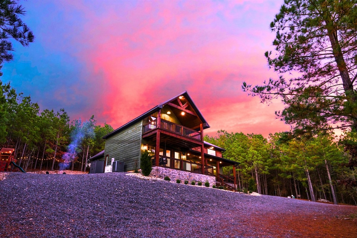 The Legend of Broken Bow by @TheVacayGetaway Cabană ⭐️nouă, de lux, pe un teren împădurit, cu priveliști extinse PICTURĂ MURALĂ ⭐️TREX, dinozauri în mărime naturală, tobogan/alpinism/arcade ⭐️Cadă cu hidromasaj, putt putt, scaune cu hamac, gaură de porumb, televizoare în aer liber ⭐️Două punți mari cu șemineu/sufragerie/saloane în aer liber ⭐️2 dormitoare cu baie proprie +twin peste pat supraetajat Grătar ⭐️cu gaz/vatră cu lemne Televizoare ⭐️ROKU în fiecare cameră ⭐️Keurig/picurare cafea 🚙 Pkg pentru 4, priză EV 📍 8 mi Hochatown 📍 9 mi Beaver's Bend