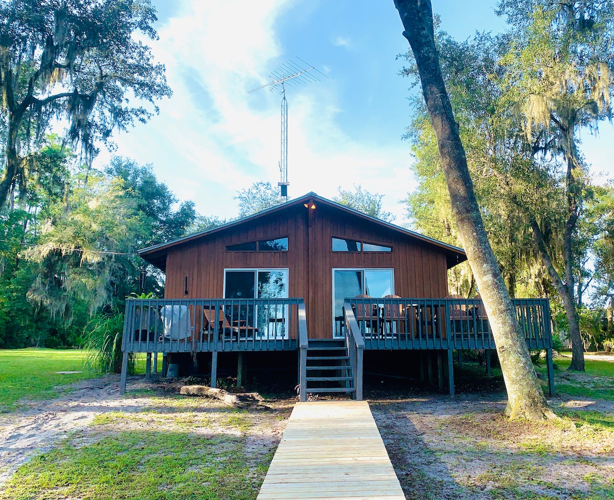 Unspoiled nature greets your every turn at this charming 650 SF lakefront retreat. A short distance from 10 of Florida's finest 1st magnitude springs, ranging from 30 - 90 minute drive, makes the location a perfect basecamp for adventure travel. Rest beneath the shade of Live oaks that pull the breeze ashore. Enjoy Sand hill cranes and hummingbirds from the cabana. Incredible sunsets from new dock. Paddle boat & paddle boards available for adventures. WiFi, Netflix, Laundry, HOT outdoor shower!