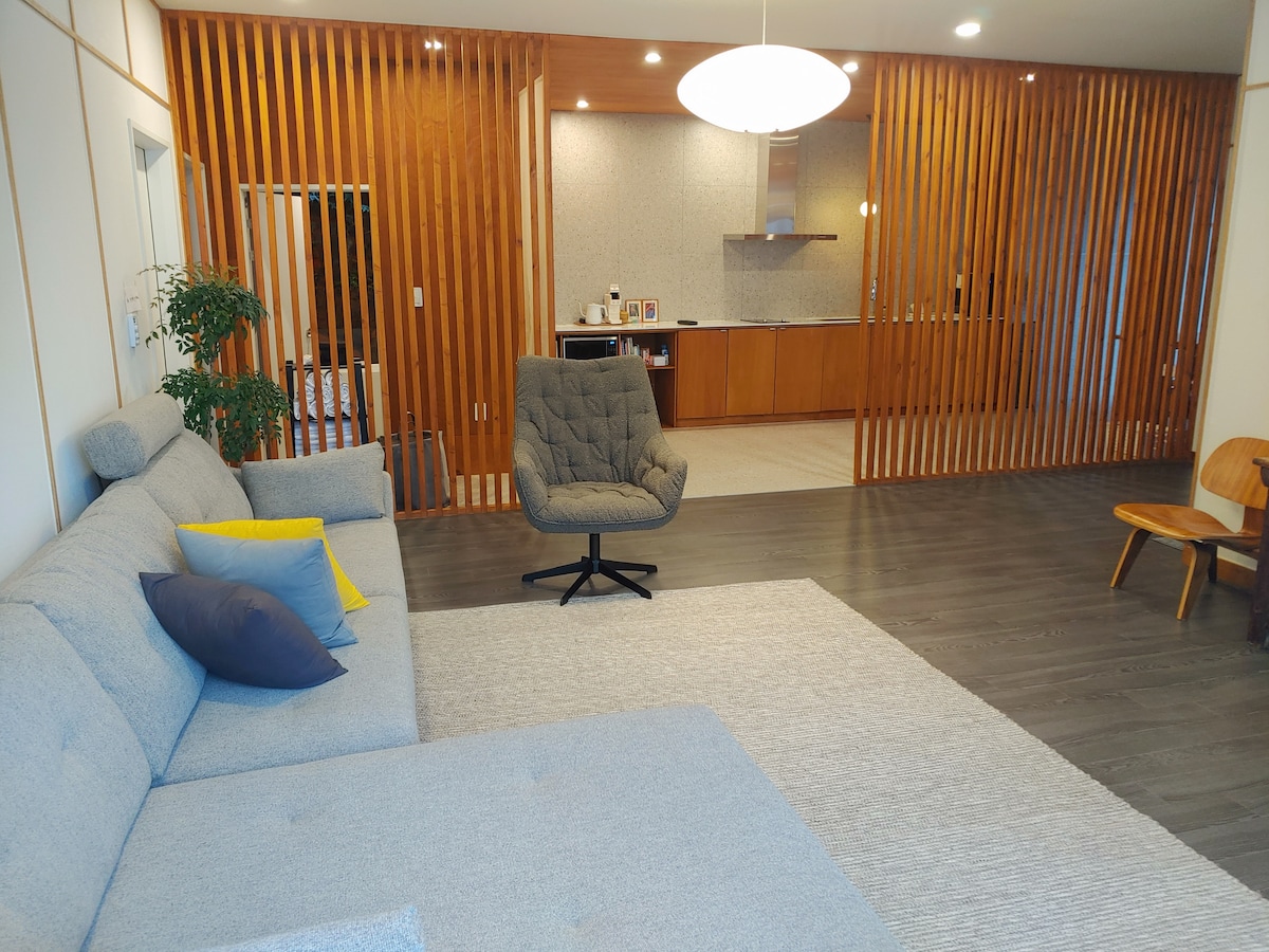Ascuns sub maiestuosul munte Hallasan, Stay NangNang oferă un refugiu liniștit înconjurat de natură. Bucură-te de priveliști uimitoare ale unei livezi de mandarine și ale căilor mărginite de flori de cireș, cu o pădure de bambus calmantă ca fundal. Trezește-te cu foșnetul blând al frunzelor de bambus și cântecele melodice ale păsărilor din Jeju, experimentând farmecul insulei în fiecare sezon. Acest spațiu privat este perfect pentru cei care caută liniște, fie pentru o ședere de o lună, fie pentru o escapadă de familie.