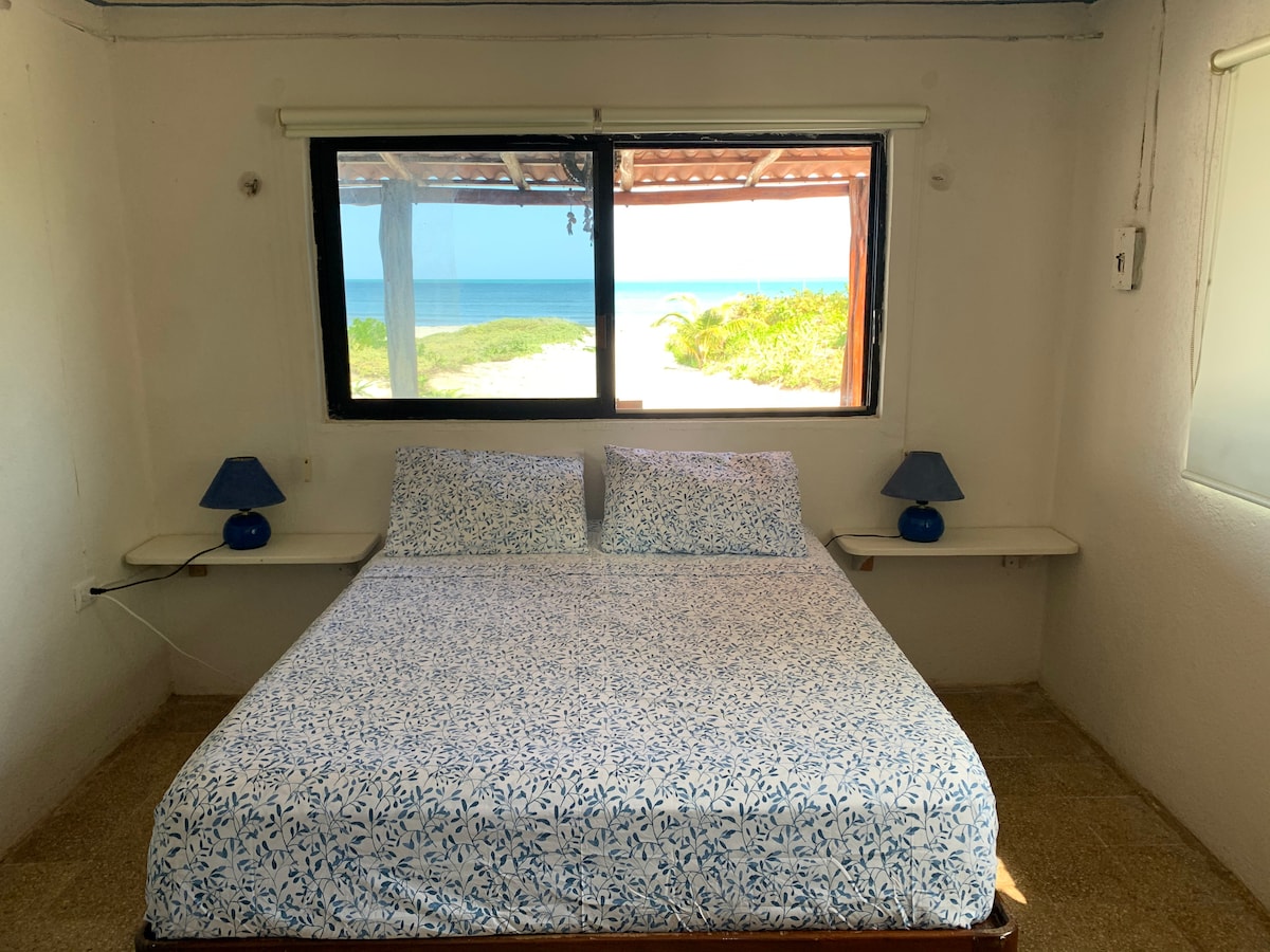 Evadează în cabanele noastre elegante și confortabile din El Cuyo, la doar o scurtă plimbare de plajă. Odihnește-te într-un pat matrimonial foarte confortabil, relaxează-te în hamacul de la mezanin și bucură-te de gătit în bucătăria complet utilată. Baia este situată convenabil la parter. Pășește pe terasa privată și bucură-te de un cadru relaxat, natural, perfect pentru a încetini, a te reîncărca și a îmbrățișa ritmul relaxat al coastei Yucatán