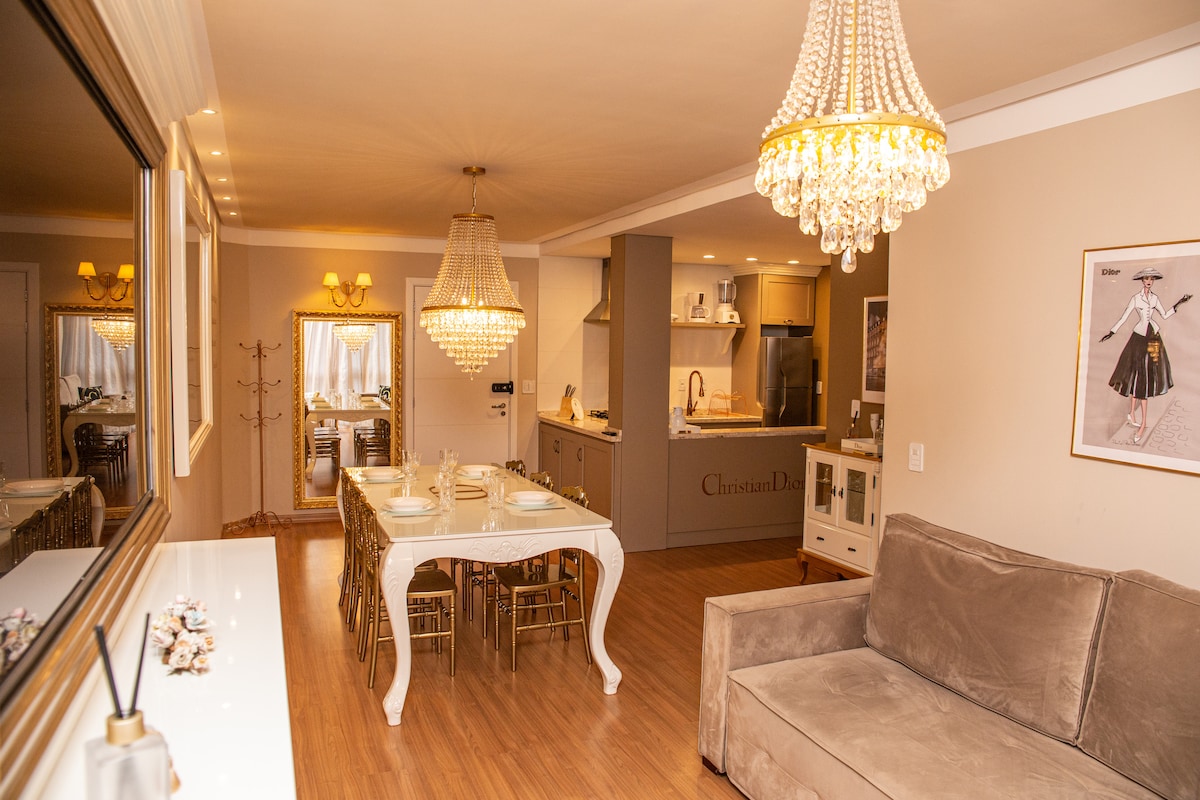 Un apartament nou și modern situat în centrul orașului Gramado, la 400 de metri de Rua Coberta, lângă Santa's Village, Hard Rock Café, Joaquina Bier Lake și multe alte obiective turistice. Ideal pentru a lăsa mașina în garaj și pentru a explora centrul pe jos. În apropiere se află o piață, o farmacie și restaurante. Echipat cu cafetieră, prăjitor de pâine, tigăi, mașină de spălat rufe și uscător automat de rufe, uscător de păr, TV inteligent în living, TV în dormitor, pat matrimonial, prosoape de baie și de față, Wi-Fi, 1 loc de parcare.