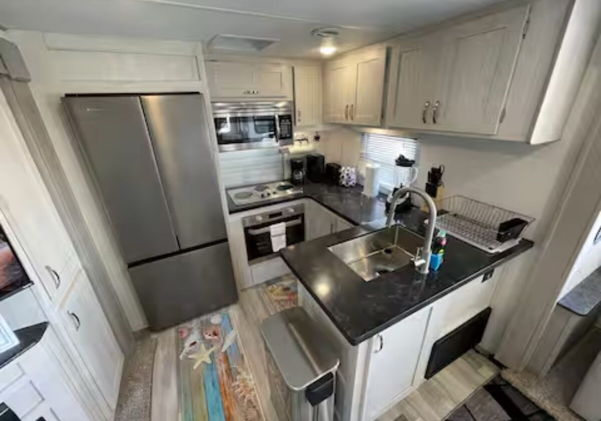 Luxury RV Retreat | 5 Min driving to Beach Experience upscale coastal living in our modern luxury RV, just 5 minutes driving from the beach! This stylish retreat offers plush bedding, a full kitchen, a spa-like bath, and a cozy lounge area. Relax under the stars, explore nearby dining, or unwind in total comfort. Perfect for romantic getaways or solo escapes, this unique stay blends luxury with beachside charm. Book now for the ultimate retreat!