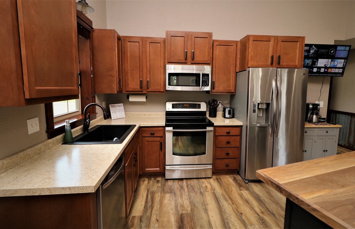 Deconectează-te, relaxează-te și lasă în urmă haosul vieții în cadrul liniștit al celor peste 1 hectar de pajiște naturală și faună sălbatică. În interior există decor modern și mobilier într-un concept deschis. Dormitorul principal de la nivelul principal și dormitorul de la mansardă au paturi matrimoniale confortabile. Wi-Fi prin fibră optică și 3 televizoare inteligente pentru momentele în care ai nevoie să te conectezi. Distrează-te jucând Big Buck Hunter Safari Edition, setat pe joc gratuit. Relaxează-te pe veranda mare cu plasă – excelentă pentru a lua masa și pentru a admira apusurile de soare. Explorează natura cu multe dotări incluse – vezi mai jos.