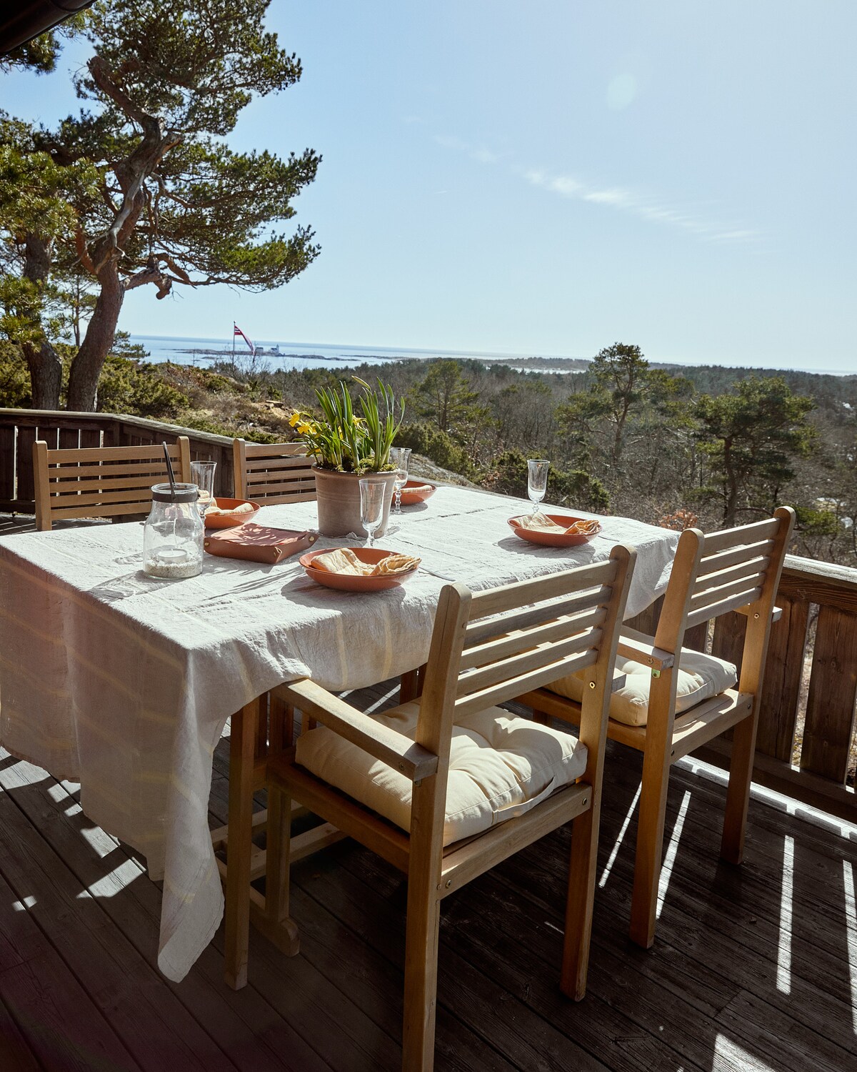 Casă nouă din bușteni, cu o priveliște uimitoare asupra întregii închirieri de bărci de la Homborøya în est la Justøya la vest. Casă mare și spațioasă, cu înălțime mare a tavanului în living/bucătărie. Este însorit de dimineața până seara și o mulțime de oportunități de a sta afară sau pe scaunele bune din fața ferestrelor mari. Aici te poți bucura de liniștea și liniștea și de priveliștile minunate. Nu sunt vecini. Este la 500 m de mers pe jos de mare. Posibilități de închiriere a unei bărci cu vâsle. Zone excelente de drumeții.