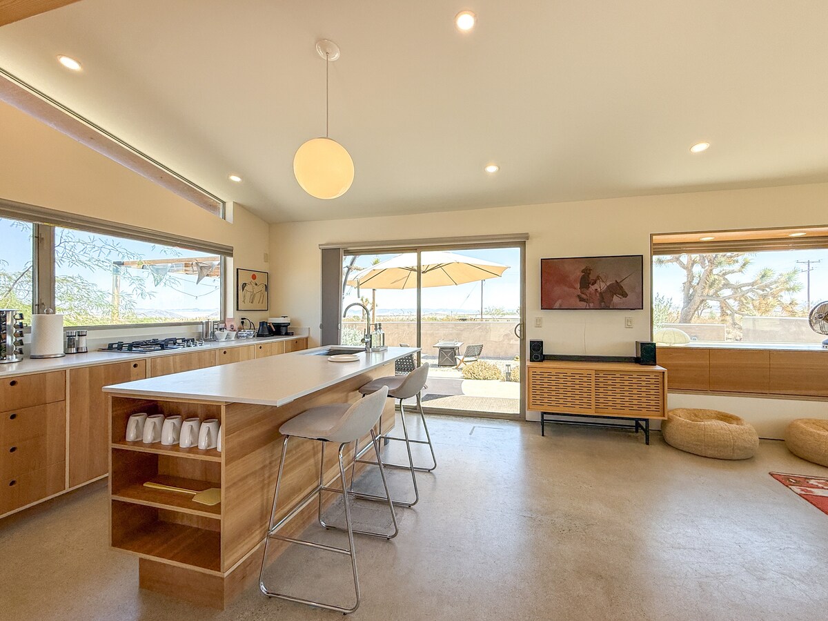 Discover Pipe’s Perch, a newly renovated cabin on 5 private acres in Pipes Canyon, just 20 minutes from Joshua Tree National Park and 15 minutes from Pappy & Harriet’s. Easily accessible, it boasts stunning views of rugged canyons and peaks. Inside, enjoy modern luxury with brass fixtures, quartz countertops, and new appliances. Large windows frame the desert’s beauty. Unwind in the California King bed with ice-cold AC for a perfect retreat.