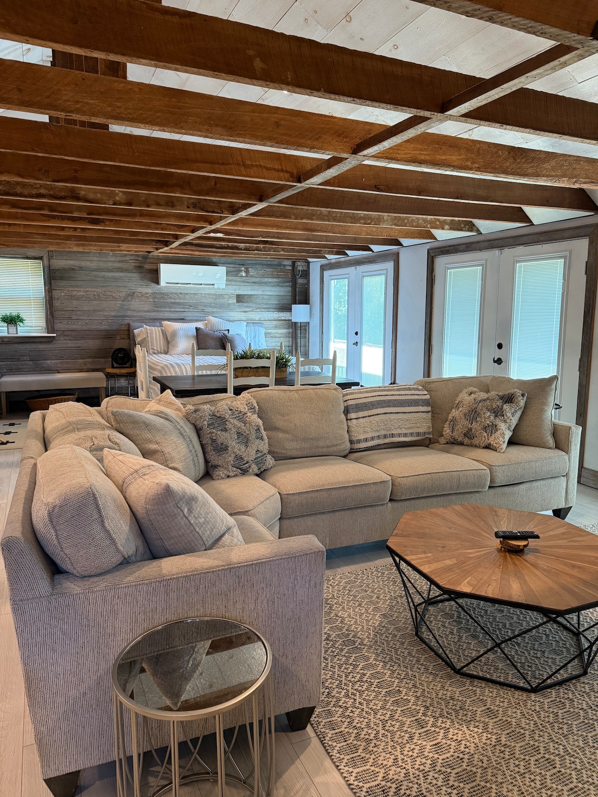 Welcome to your cozy woodland retreat! Nestled in a serene forest, this charming one-bedroom Airbnb offers a perfect blend of style and tranquility. Designed with a modern aesthetic, the space features chic furnishings, warm modern accents, and large windows that invite natural light and breathtaking views of the surrounding trees.