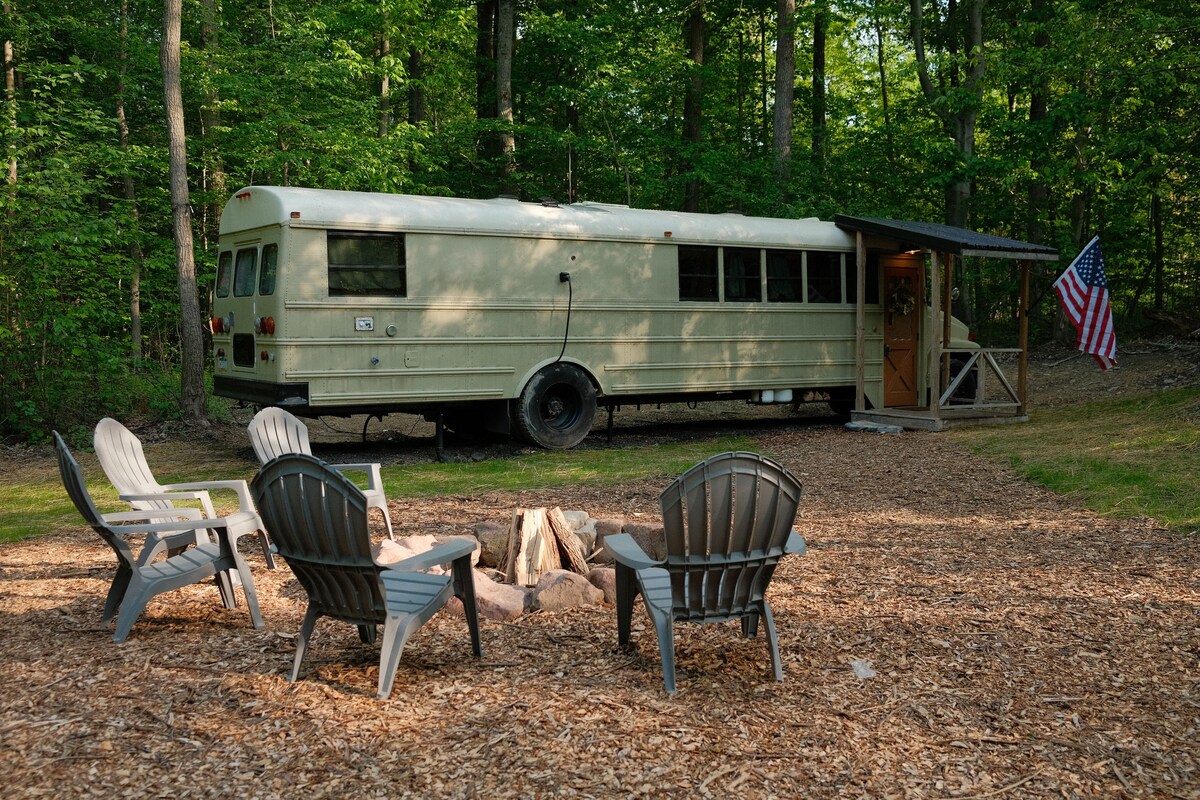 Sadie The Skoolie + Backyard + Firepit