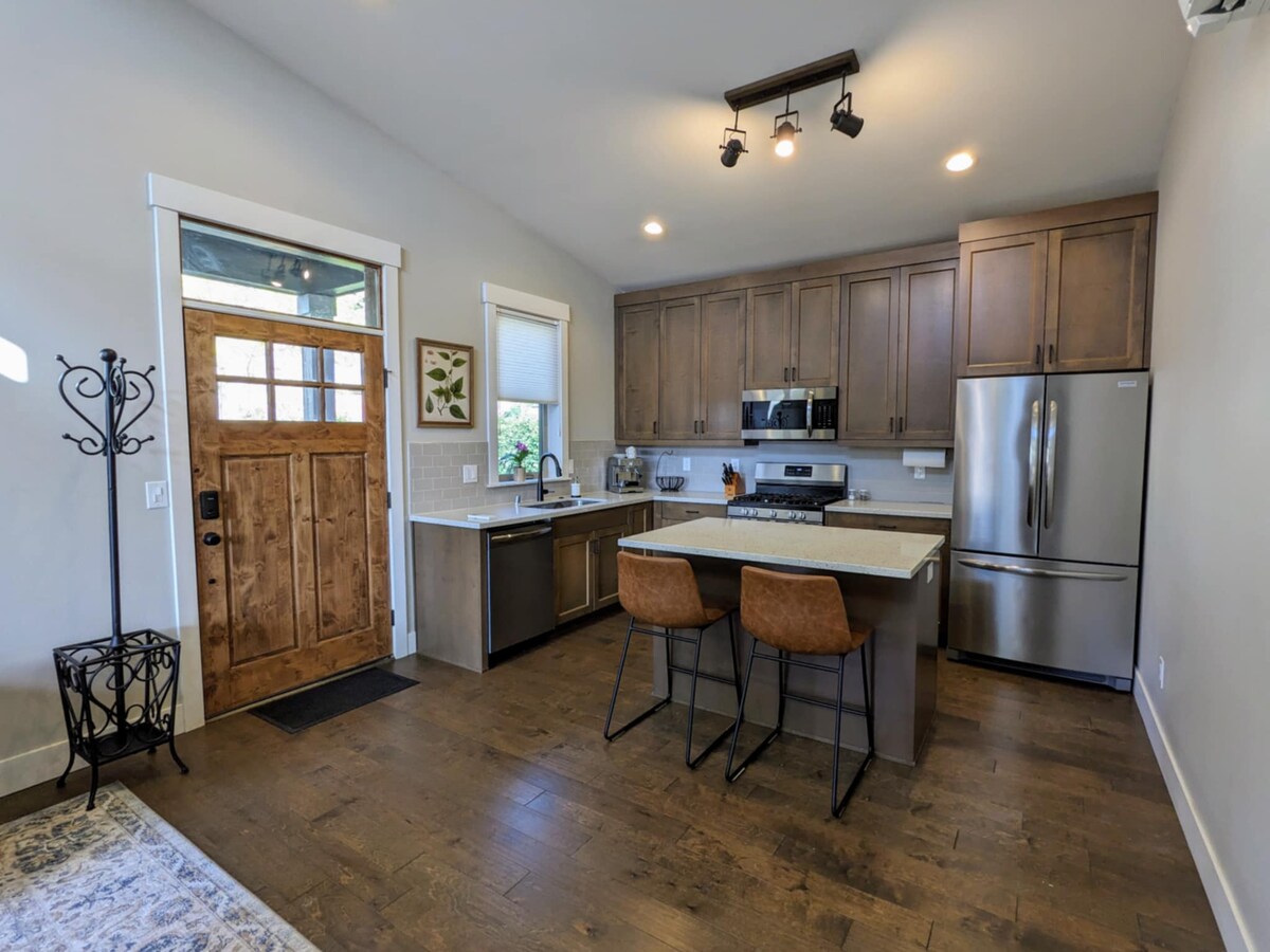 Relaxează-te în această suită matrimonială cu intrare privată, la doar 10–15 minute de mers pe jos de cafenelele, magazinele și atmosfera locală din Hood River. Frumos decorat pentru o ședere confortabilă și liniștită - perfect pentru cupluri, călători singuri sau familii cu cei mici. Prepară un espresso bogat în camera ta cu aparatul nostru automat, bucură-te de Wi-Fi rapid, gustări, saltea de yoga și jocuri. Accesul privat și parcarea ușoară fac ca venirea și plecarea să fie floare la ureche. Situat central pentru aventuri în Gorge: fabrici de vin, drumeții, sporturi de iarnă, distracție pe râu, ciclism și agroturism.