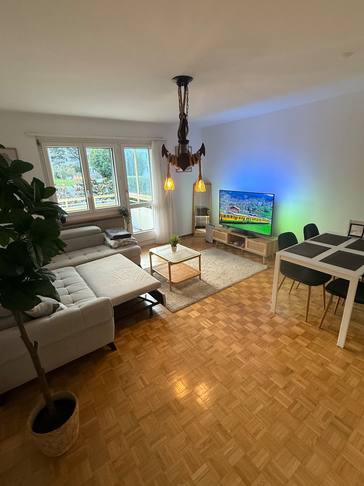 Enjoy our home in Oberrieden near Lake Zurich! Modern, bright apartment with one bedroom (double bed), living/dining area with sofa, kitchen, bathroom, and two balconies. Wi-Fi, coffee machine, store and train station (200m). Direct trains to Zurich/Zug. 5 nights minimum. No smoking/pets.