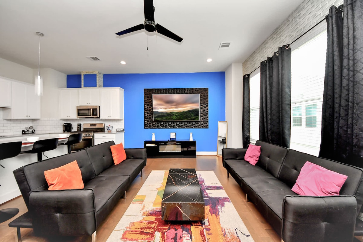 Escape to this loft-style townhouse in the heart of it all—Galleria, Downtown, Med Center, nightlife, NRG, museums, & restaurants just minutes away. Enjoy the plush king bed and soak in the Jacuzzi jet tub made for two. Downstairs has a queen pillow-top air mattress (if needed) &.5b Smart TVs, full kitchen, washer & dryer, fireplace, patio, and balcony perfect for relaxing or entertaining. 2 pools, tennis court, & covered parking.Ideal for couples, romantic escapes, or a chill weekend retreat. ✨
