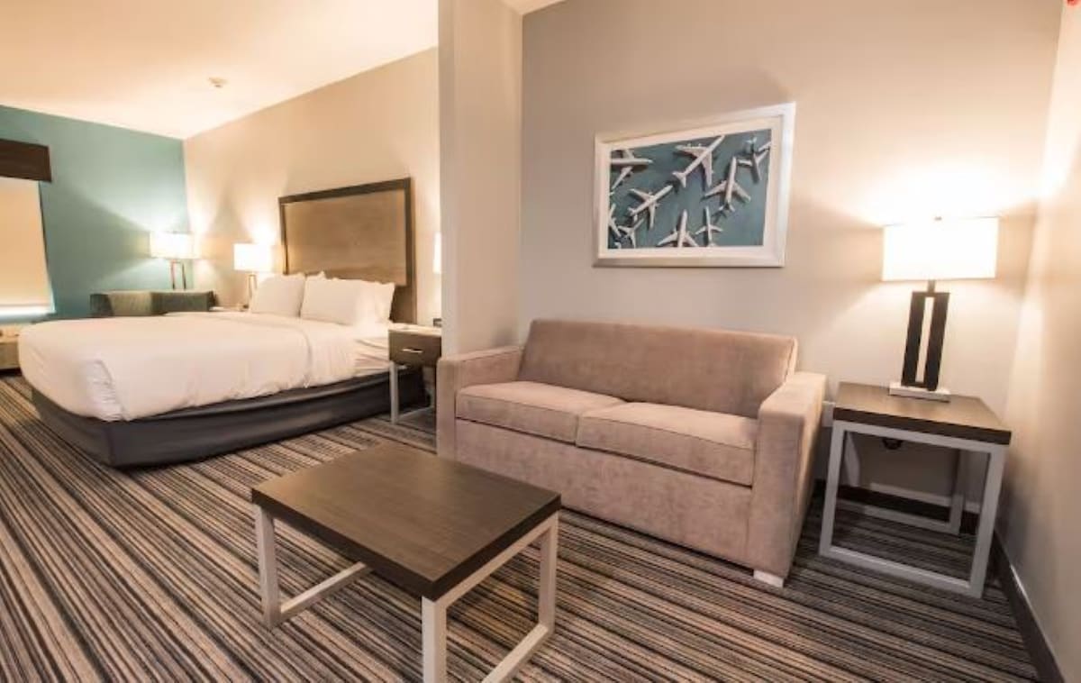 Suită privată 100% cu saltea confortabilă și aer condiționat. Mic dejun inclus. Personal non-stop. Un pat matrimonial și o canapea extensibilă pot găzdui până la 4 persoane. Parcare gratuită. Acces complet la alte facilități ale hotelului, inclusiv bar, piscină, jacuzzi, sală de gimnastică, mașină de spălat rufe, uscător de rufe, TV prin cablu și multe altele. 5 minute până la aeroportul de HOBBY-URI. Transfer gratuit de la/la aeroport. Toate camerele sunt camere pentru nefumători. Orice comportament al fumatului este supus unei penalizări de 200 USD. Nu este permisă nicio parte, orice raport repetat de zgomot de către un alt oaspete este supus unei penalizări de 150 USD.