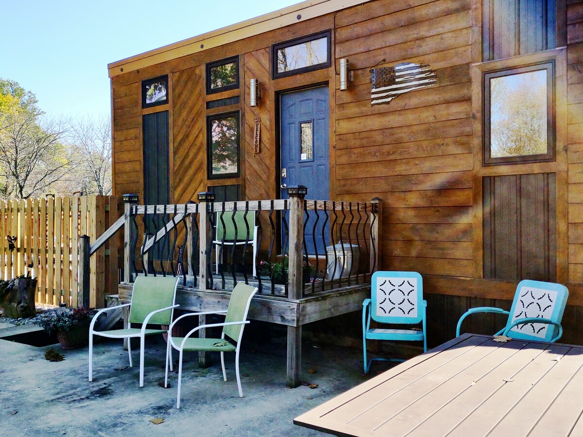 Experimentează căsuța trăind într-o locație frumoasă împădurită. Spațiul include un pat matrimonial confortabil, un birou pliant, o chicinetă mică, plus o zonă de relaxare și relaxare. De asemenea, are o frumoasă zonă de relaxare în aer liber cu zonă de grătar și de observare a păsărilor la iaz. Bucătărie minimă/zonă de gătit, dar un duș la dimensiune completă și toaletă cu apă uscată (fără apă, dar nu mirositor).