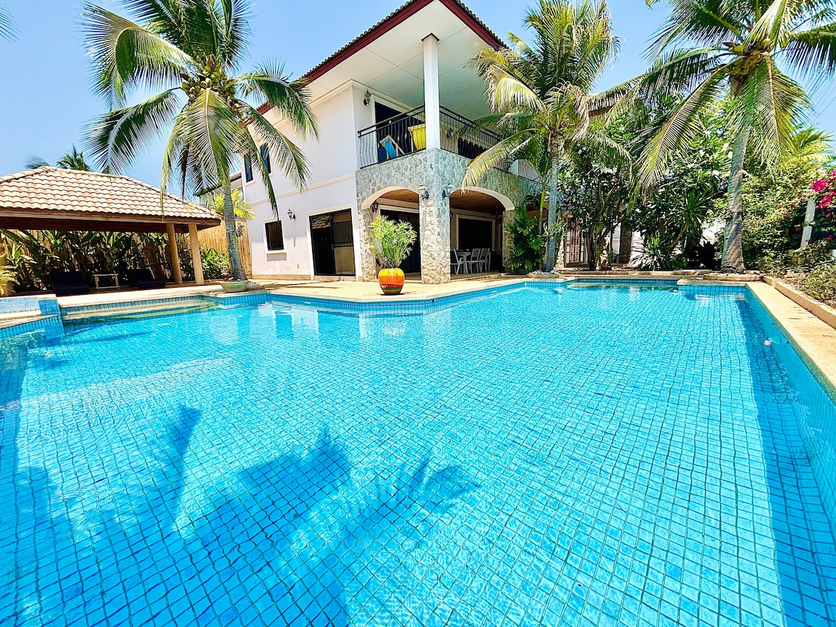Recent deschis ! Seahut este o vilă privată cu piscină, cu un loc liniștit și situat central. 4 dormitoare cu acces la piscină cu 4,5 băi proprii ( 0,5 în living) Piscină de 4,5*9 m și zonă de grătar în jurul piscinei Bucătărie completă cu mașină de spălat 5 minute de mers pe jos până la plajă (mergi pe jos peste pasaj în fața mall-ului Huahin Market Village) 3 minute de mers pe jos până la satul Huahin Market (supermarket, multe magazine și restaurante) 7 minute de mers cu mașina până la piața de noapte Huahin 8 minute de mers cu mașina până la piața de noapte Cicada/Tamarid