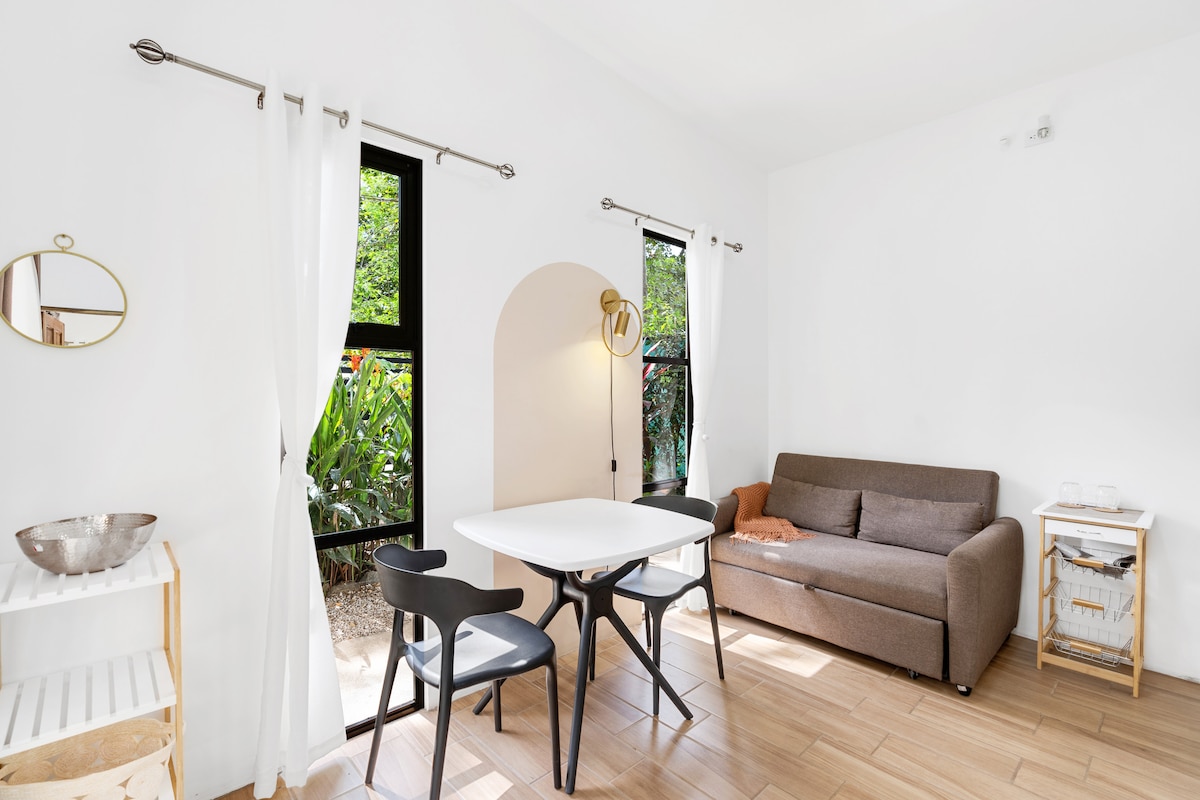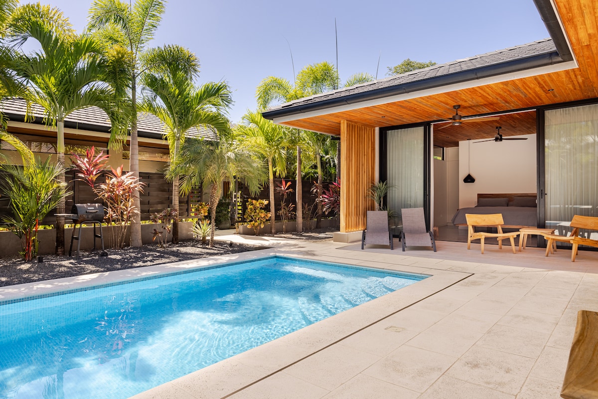 Experimentează paradisul în Jungle Studio. Doarme confortabil 2 persoane, dotate cu un pat matrimonial mare, o chicinetă complet echipată și o baie completă. Bucură-te de piscină, zonă comună în aer liber cu grătar, masă de biliard, zonă de spălătorie și duș în aer liber. La doar 15 minute de plaje uimitoare și puncte turistice fierbinți, cum ar fi Tamarindo, Playa Grande, Flamingo și multe altele. Parcare sigură la proprietate și pază non-stop. *Te rugăm să reții că zona în aer liber este împărțită între gazde și, eventual, alți oaspeți AirBnB.*