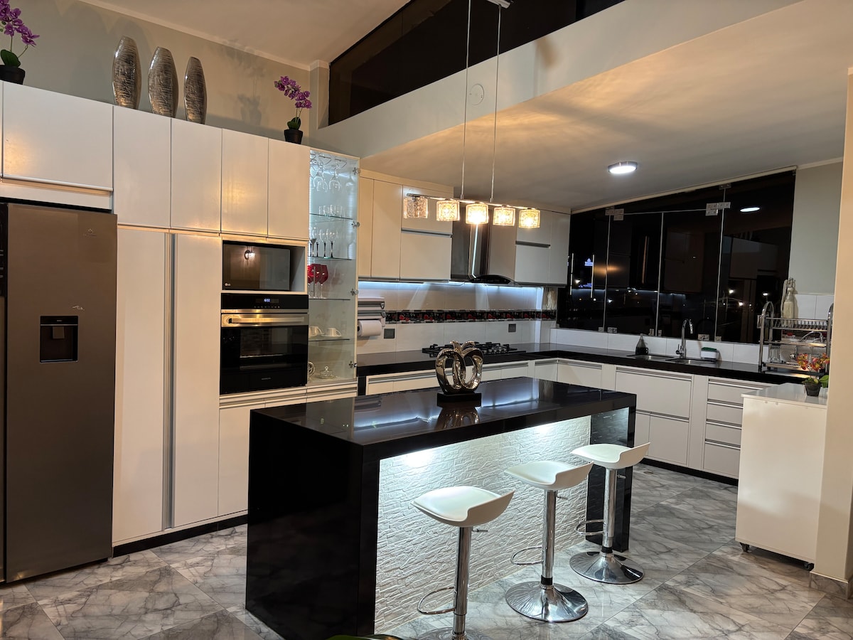 Apartament 🏡✨ modern de 65m ² în Huánuco ✨🏡 La doar 3 minute de Open Plaza și la 5 minute de Plaza Huánuco. 🚶♂️🏢 Apartament inteligent cu automatizare a locuinței: 🔐 încuietoare, 🧊 frigider cu ecran tactil, mașină de 🧺 spălat rufe AI, 🍳 aragaz cu inducție (4 arzătoare), 🍽️ accesorii complete, 🔥 cuptor cu microunde, 🥪 sângerare, 🍵 ceainic, 💡 întrerupătoare inteligente, 🛏️ dormitor cu Smart TV, 🛋️ living cu Smart TV, 🗣️ asistenți vocali Google și Bixby, mașină de spălat gratuită. Ideal pentru o ședere confortabilă și modernă! 🌟