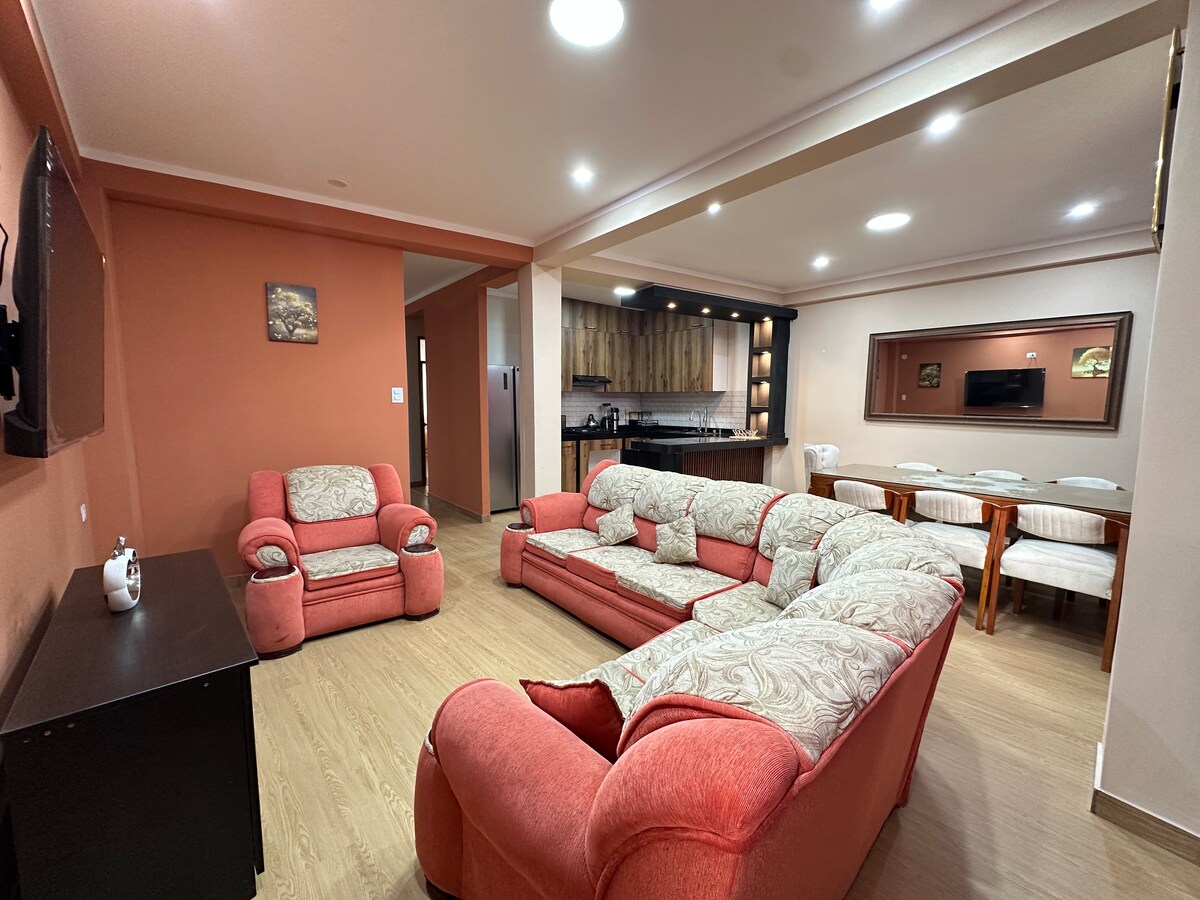 Apartamentul este situat în portaluri - Amarilis - Huánuco. Se află la etajul al treilea al unei clădiri cu 5 etaje, este privată, cu o intrare separată, un cartier liniștit, sigur și foarte bine situat. Apartamentul este complet mobilat și echipat cu artefacte. Are 3 camere, două băi, copertină, o spălătorie cu mașină de spălat, o bucătărie echipată cu mobilier de bucătărie, o sală de mese și un balcon cu ecrane.