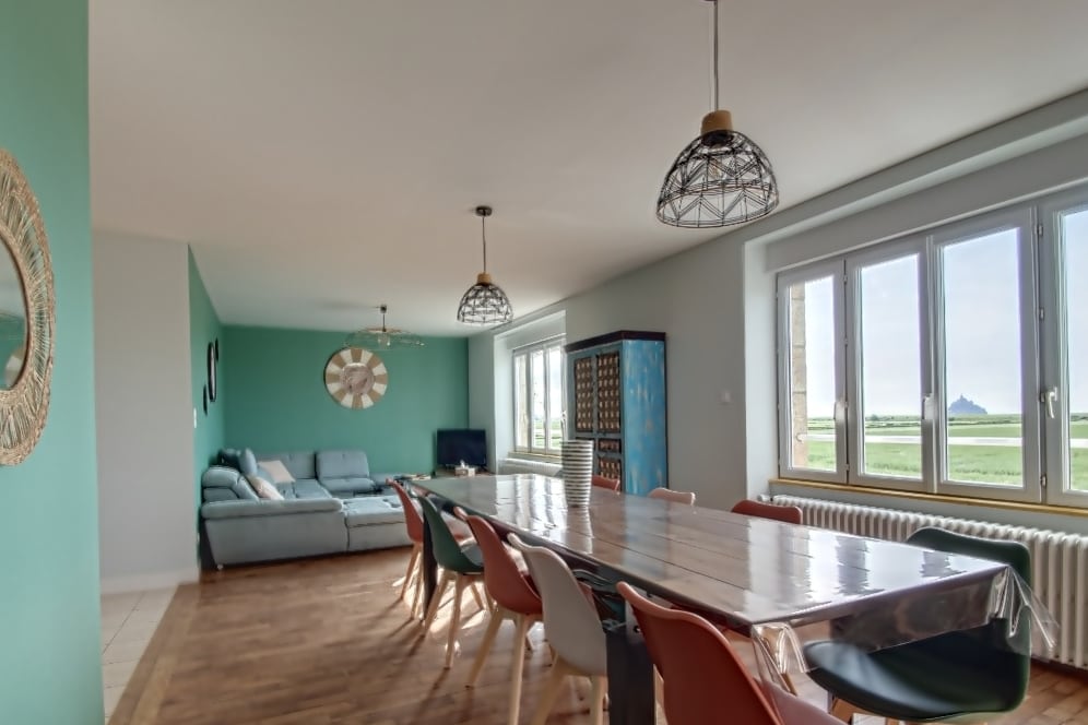 Gîte de 6 personnes, situé au pied du Mont Saint Michel, possibilité d'accès à pied sur le site. Chaque soir on peut assister au ramassage des moutons de pré-salés et profiter du coucher de soleil sur la baie. Boulangerie et Restaurant à 5 min, commerces à 10min. A mi chemin entre les plages de St Malo et Jullouvile. Un garage pour mettre une remorque, des vélos ou Motos. Les draps ainsi que les serviettes sont fournis. Chaise haute pour bébé, lit parapluie