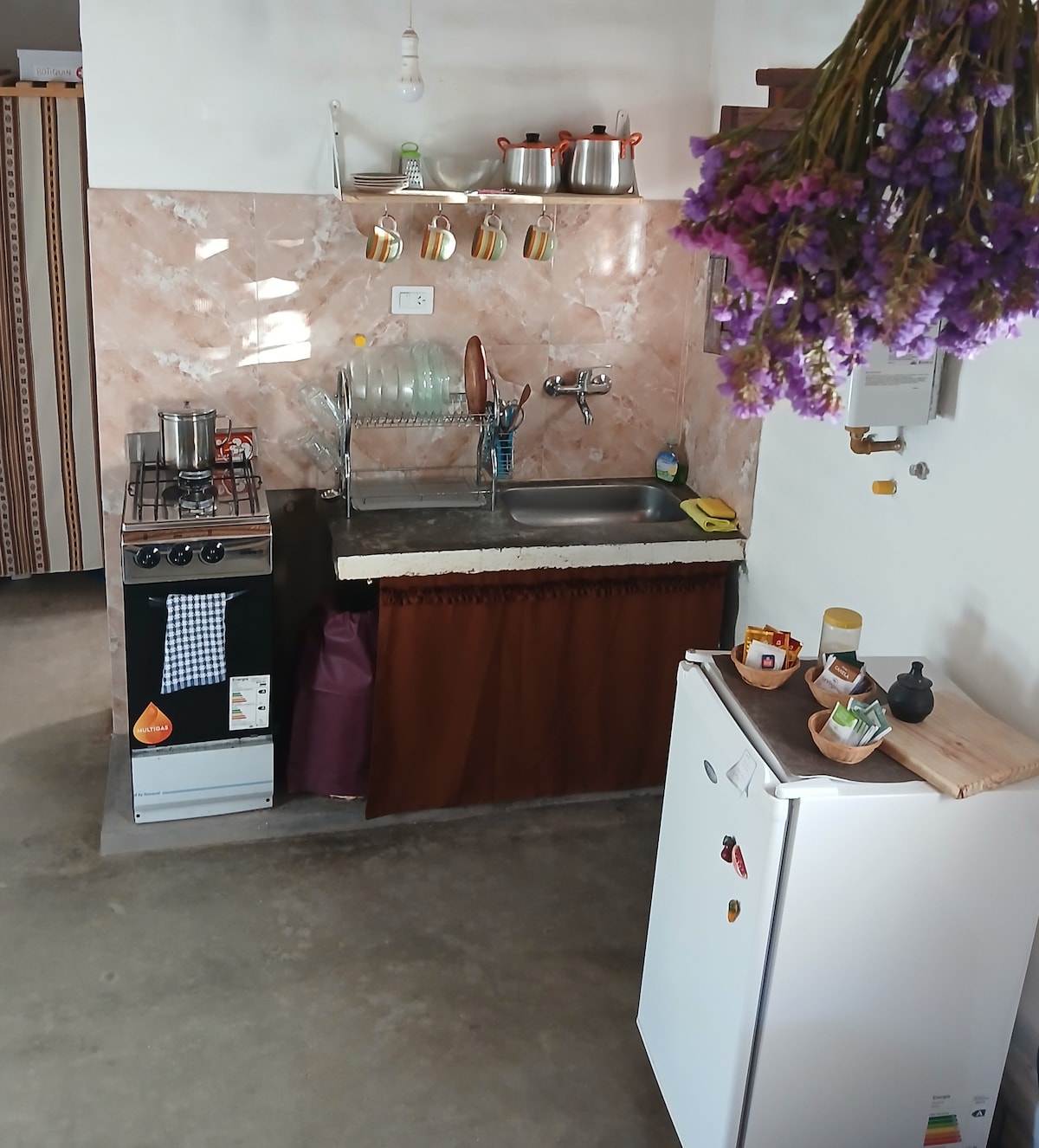 CAMERĂ DE RETRAGERE LA ȚARĂ CU BAIE PRIVATĂ situată în inima naturii. Clarificăm acest lucru astfel încât atunci când evaluezi LOCAȚIA să știi că este înconjurată de dealuri și la 800 de metri de centru. Priveliști unice asupra Quebrada. Pat dublu;cearșafuri,prosoape și pături. Esență,scaune și articole pentru a pregăti un mic dejun,un seif numai pentru încălzire, pava electrică,frigider, veselă, parcare gratuită,acoperiș,nu închis. Wi-Fi. calefaccion. Curtea din față și mediul rural andin amplu: arbori churqui, sălcii etc.