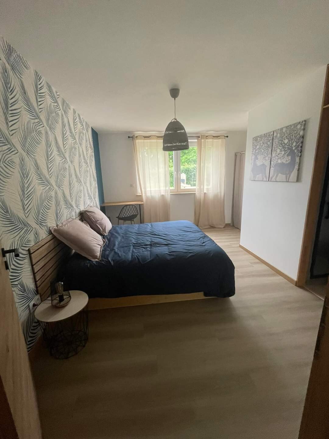 Casă liniștită de 55m ² în clădire exterioară Ideal pentru șederea ta în Sarreguemines👍🏼 Recondiționat Living cu canapea extensibilă care poate fi transformată într-un pat de 160 x 200 mm Dormitor cu pat dublu/ posibilitate de a avea 1 pat de 180x190 cm sau 2 paturi de 90x190 cm Baie cu duș Bucătărie utilată + mașină de spălat vase Garderobă la intrare + dressing la etaj Mașină de spălat și uscător disponibile Terasă și grădină Magazine și transport public 100 m Parcare gratuită
