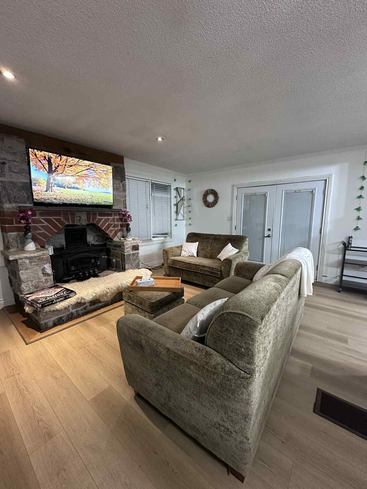 Bine ai venit în apartamentul nostru fermecător de la etajul principal din frumosul oraș Orillia! Acest spațiu este potrivit pentru familii sau grupuri mici care caută o ședere confortabilă într-o locație convenabilă. Aceasta este o casă complet mobilată, care are trei dormitoare, o baie, o bucătărie complet utilată, cu toate elementele esențiale necesare pentru a-ți pregăti propriile mese. Livingul este luminos și confortabil, cu un Smart TV Samsung de 43", inclusiv Netflix, internet nelimitat de mare viteză și o masă spațioasă cu 6 locuri.