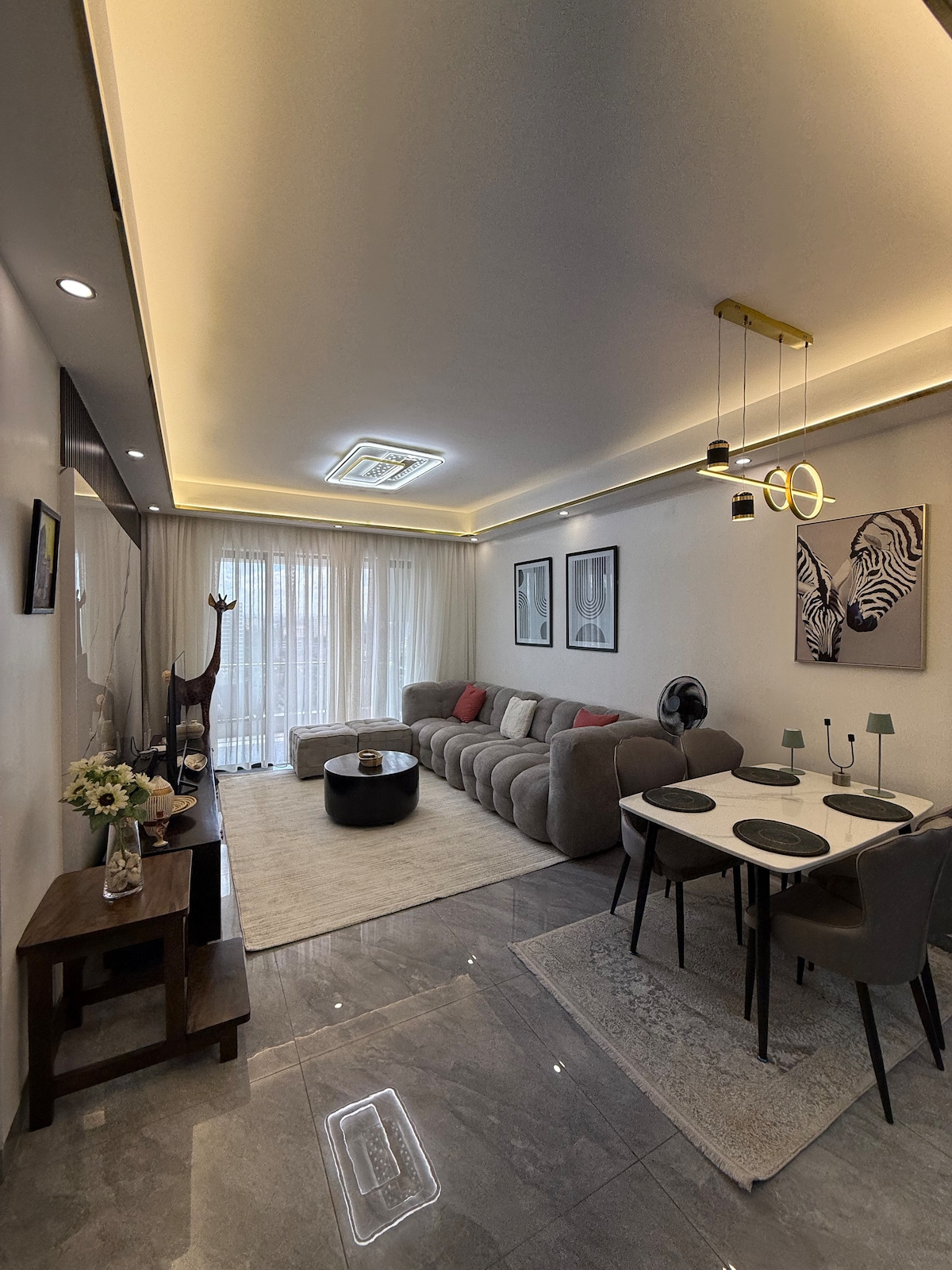 This stylish place to stay is a perfect home away from home Its Beautiful,Spacious, fully equipped with new appliances and everything you need to feel relaxed, cosy and comfortable You Have the appartment to yourself which is 30minutes drive to & from the airport, 10 minutes away from shopping malls, and very close to most scenic restaurants and entertainment spots