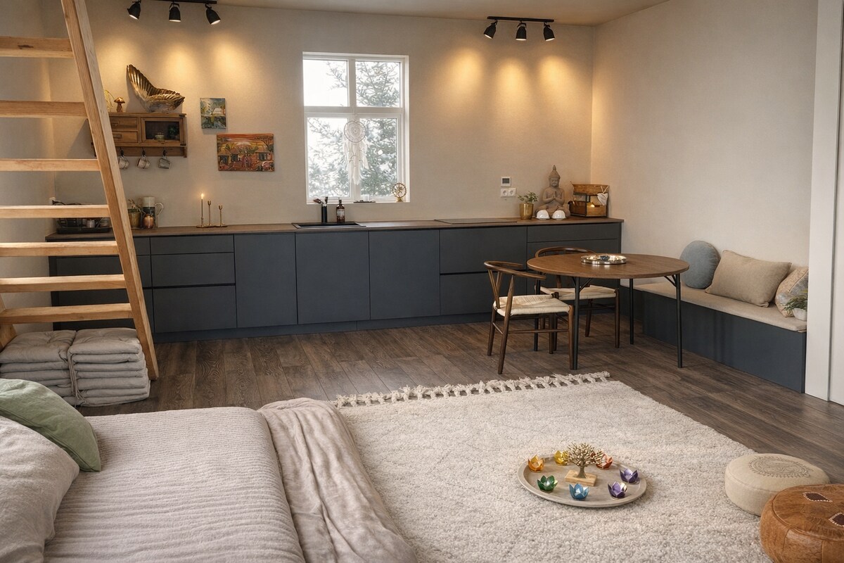 Your Home in the Hot Springs, a cozy, bright apartment just minutes away from natural geothermal bathing and Iceland’s enchanting landscapes. Whether you’re here to unwind after a day of exploring or to see the Northern Lights, this is your peaceful base. Nestled in a tranquil area close to geothermal activity, this apartment is the perfect mix of serenity and convenience. You’ll be just a short walk to local hot springs and pools, the golden circle, cafés and Icelands main attractions.