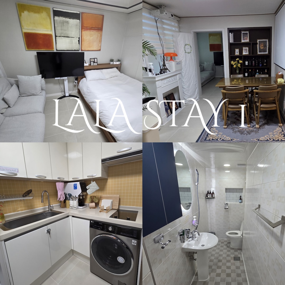 Bună.👋 Lala Stay 1 este situat în Gwangcheon-dong, centrul orașului Gwangju. Gwangcheon-dong se află la 10 minute de mers pe jos de terminalul de autobuz U Square🚌, 🏢magazinul universal Shinsegae, 🏪E-Mart și 🏟stadionul de baseball Champions Field. Larastei este o casă cu două etaje, iar primul și al doilea etaj sunt folosite ca spații de cazare separate. Printre acestea, Larastei 1 este la etajul 1 și există 3 camere și 3 paturi matrimoniale, astfel încât să poți avea intimitate. În plus, podeaua este placată cu gresie, astfel încât să poată fi utilizată confortabil. În plus, sunt oferite fotolii de masaj💺, articole de toaletă💄, proiectoare cu fascicul📽, bucătării frumoase🍽, canapele spațioase, console de jocuri🎮 și jocuri de societate🎲 pentru o ședere plăcută. 🍖🍺Curtea nu este mare, dar există mese și scaune pentru 6 persoane pentru a avea o petrecere la grătar, deci este perfect pentru a te distra și a te simți bine. Mulțumesc.
