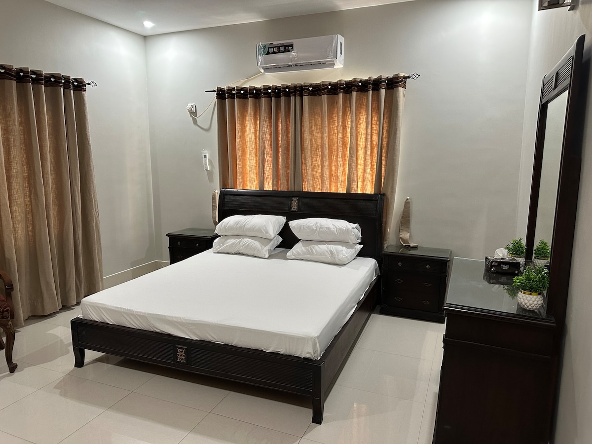 La câțiva pași de Pearl Continental, este destinația perfectă în oraș. Casa este situată într-o comunitate închisă, foarte sigură, accesibilă, are multe grădini și are acces ușor la oraș. 2 minute de mers cu mașina de un supermarket (supermarket Gohar) Restaurante renumite în zonă, poți obține tot felul de bucătărie pakistaneză! Bucătărie complet utilată, produse de curățat disponibile și voi fi mereu acolo pentru a te ghida prin oraș! Cel mai bun loc pentru familiile care vizitează pentru evenimente/funcții.