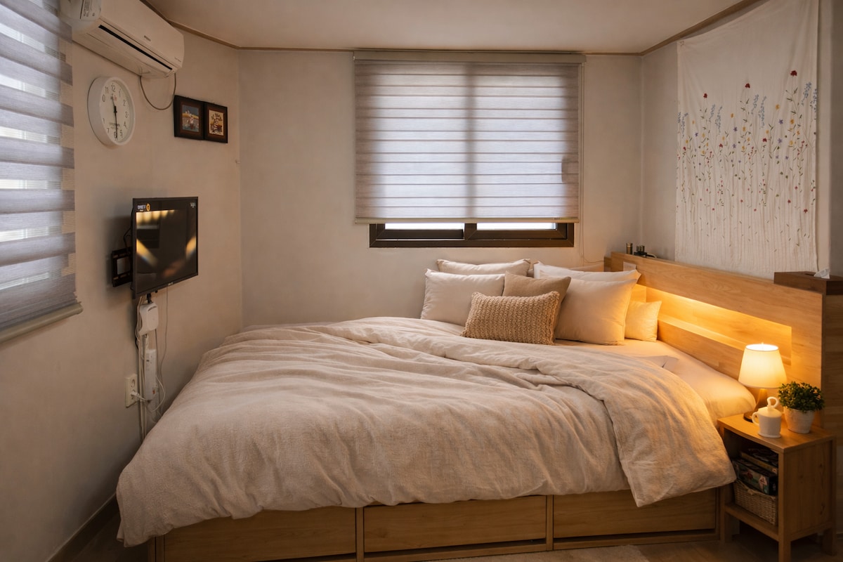 Just 30sec. 1st floor*Cozy*Hongdae Stn. 3Room4Bed.