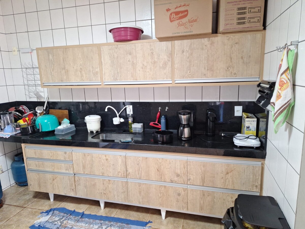„Iacanga Resort: evadarea perfectă pentru a-ți reîncărca bateriile! Găzduim până la 11 persoane în confort total. Punctele principale: * Timp liber: piscină răcoritoare și masă de biliard. * Confort: 3 dormitoare cu aer condiționat. * Locație: la 4 minute de centrul orașului și la 5 minute de Rio Tietê/Prainha. Taxa noastră de curățenie asigură o piscină limpede și o casă igienizată pentru sosirea ta. Bucătărie completă pentru grătar. Rezervă acum și bucură-te de momente de neuitat!”