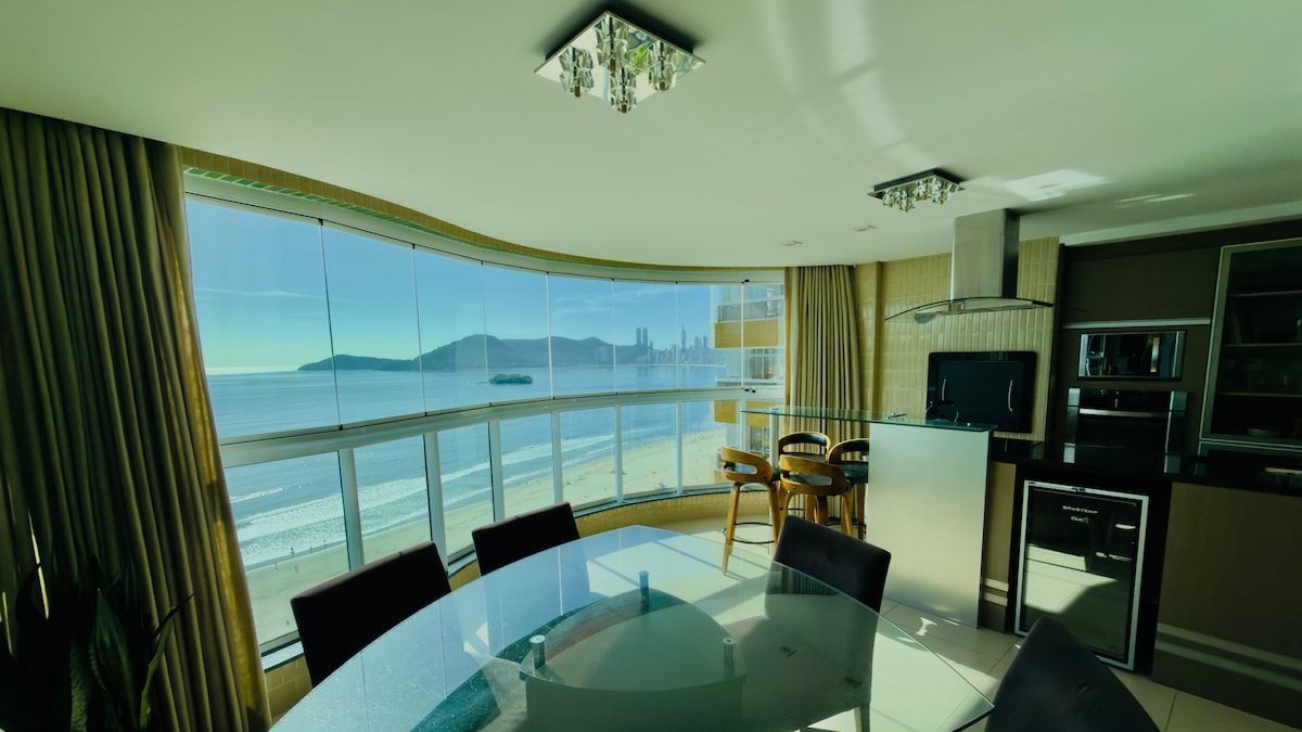 Apartament cu vedere incredibilă la mare, aerisit și însorit, decor cu design curat, bucătărie echipată și completă, aer condiționat în toate camerele, paturi tip cutie, în cea mai bună locație din Balneário Camboriú. La câțiva pași de nisip, într-o clădire cu vedere la mare. Garaj privat pentru o mașină. WI-FI GRATUIT pentru întreaga ședere. Sunt disponibile așternuturi de pat și prosoape.